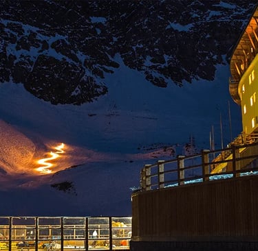 And when the mountain calms down and the lifts stop, Portillo doesn't turn off. The night descents with torches are a tradition not seen in many other places. Watching lines of fire descending through the dark snow is almost hypnotic: it’s a moment where the community joins to celebrate the mountain and the light—a mix of adrenaline and ceremony rarely experienced in larger, more commercial resorts.